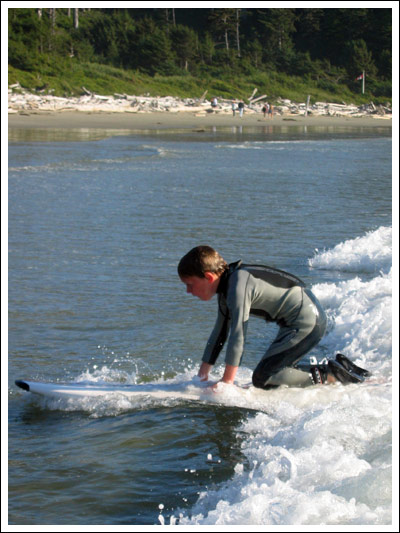 The kids got up a while later, the smell of bacon rousting them from their sleep. After breakfast, we tidied up our campsite, rinsed our dishes (bears love to clean dishes), and piled into the Minivan of Adventure. Today was “Surfing Day,” and we didn’t want to miss a second of it.