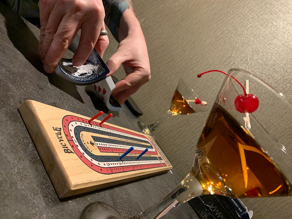 I'm not ashamed to say that hand-after-hand, Jenn pegged me into oblivion and took home the win in the first-ever Dropbear And Panda Annual World Mountain Cribbage Championship.