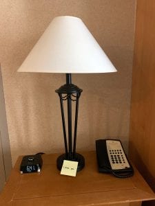 I know what you’re thinking: “What about Brad?” Well my friends, Brad The Recalcitrant Desk Lamp™ is back, baby! He’s back in action and fulfilling his destiny as one of three incredible desk lamps making the world a little brighter in room 905, of the Ramada Plaza Downtown Calgary. He has moved up in the world to the top floor and into a suite after our adventures! You can tell he’s got a bit more swagger now, and it’s not undeserved—he’s been moved to the prime desk lamp spot beside the bed next to the alarm and the phone, as befitting of his status. This is the top desk lamp position, coveted by all lamps great and small, in all rooms across the land. The other lamps look up to him as the leader he has become, and I’m pleased to report he hasn’t let this go to his head. Brad’s got an easy-going manner and grace. He's seen some shit. Brad’s got nothing to prove.